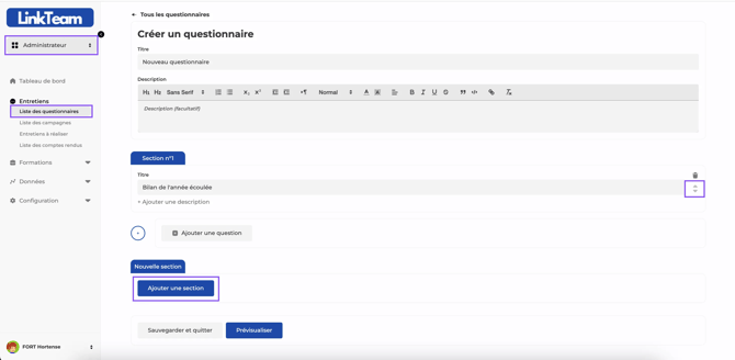 - Réorganisez vos sections par glisser-déposer (les 2 flÚches que vous retrouverez sur la droite de la section)