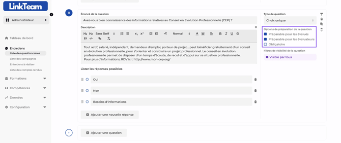 Préparable par l'évaluateur : l'évaluateur peut préparer la question, l'évalué ne voit pas la question
