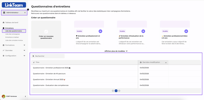 - Sélectionnez l'onglet "Liste des questionnaires"