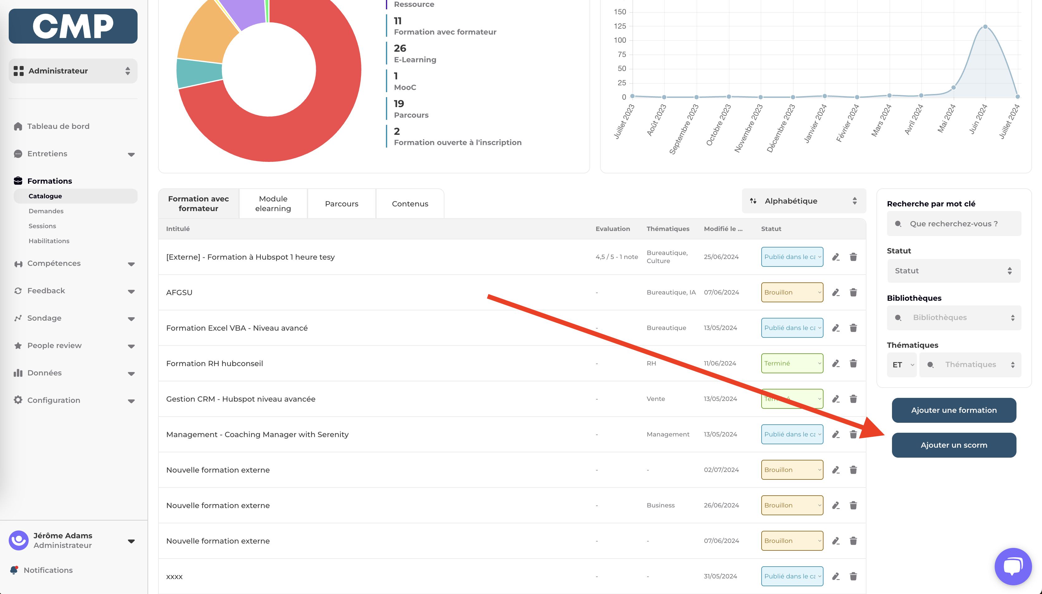 1) Dans votre catalogue de formation, cliquez sur "Ajouter un scorm"