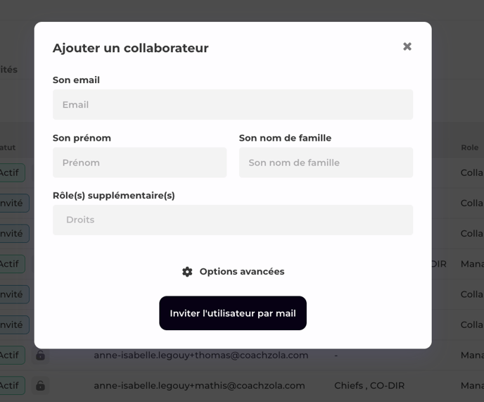 Pour ajouter un collaborateur à ma plateforme ZOLA, il me suffit de me rendre sur ma base utilisateur et de l'ajouter manuellement !