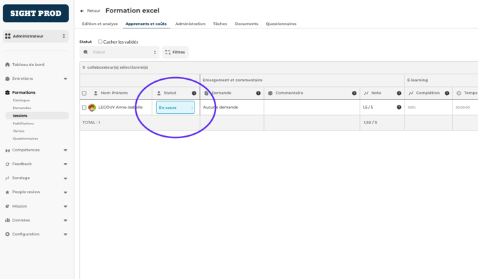 Tant que l'apprenant n'aura pas atteint le score, le statut de sa formation sera toujours "en cours".