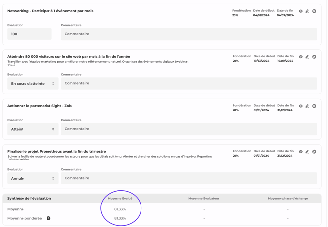 Par défaut, une échelle quantitative vous est proposée. Cependant, il est tout à fait possible de configurer en amont des évaluations une échelle qualitative !