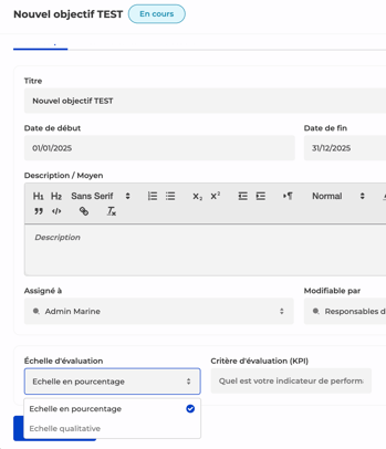 Lors de la création des objectifs vous pouvez choisir l'échelle de votre choix (Qualitative ou Quantitative).