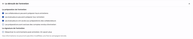 Vous avez la possibilité d'ouvrir la préparation des entretiens aux évalués et/ou aux évaluateurs, avec plusieurs options :