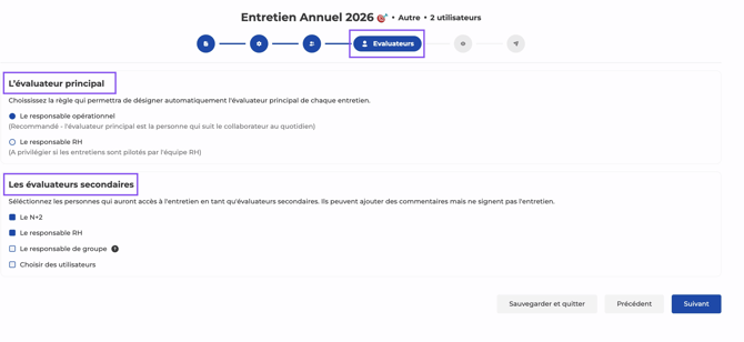 Ăvaluateur(s) secondaire(s) (optionnel) : Responsable RH, N+2, Responsable de groupe et/ou utilisateurs par dĂ©faut