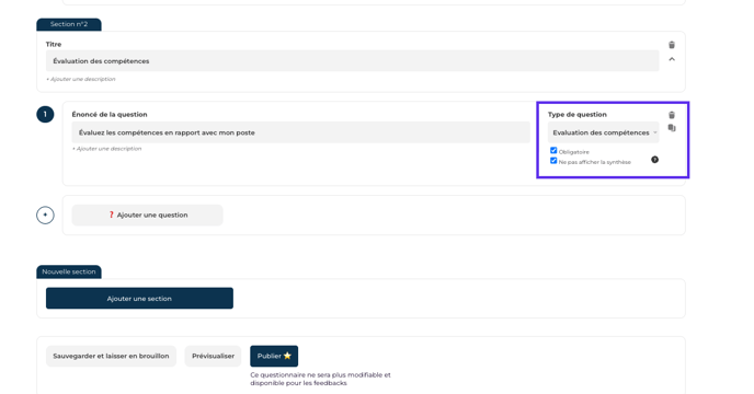 Vous pouvez désormais masquer les résultats des évaluations de compétences dans les feedbacks évaluations de mission. Cette option se configure directement dans vos questionnaires de feedback et d'évaluation de mission!