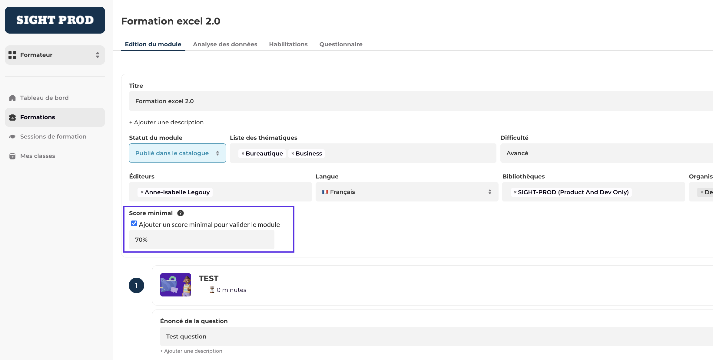 [Formation] - Définir un score minimum à atteindre pour la validation des modules e-learning faits avec le LMS