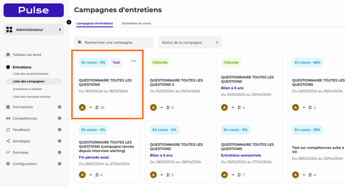 Utilisez cette fonctionnalité pour tester vos campagnes d'entretiens et supprimer facilement les données de test par la suite