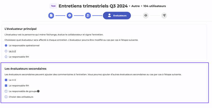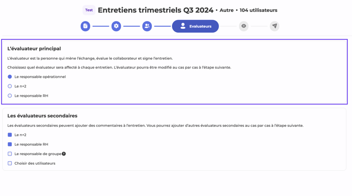 À l’étape 4 du lancement de votre campagne, vous aurez la possibilité d’ajouter un ou plusieurs évaluateurs à votre entretien.